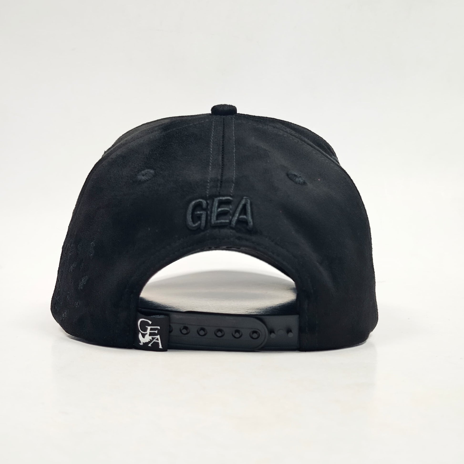 Luxury meets streetwear. The GEA Full Suede Hat is crafted in rich black suede for a sleek, elevated finish. Featuring a bold raised GEA logo across the front, this piece delivers texture, depth, and statement appeal. Its structured build and curved brim give it a clean silhouette that works with any fit — from casual to elevated street style.